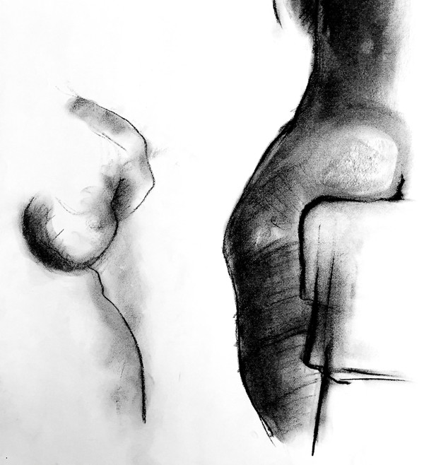 Work here includes a photograph of a charcoal drawing. Digital re-workings of the charcoal drawing are to the right. Both of the digital abstracts recieved an excellent review in the Ithaca Times. They were part of a Juried show at the State of the Art Gallery. To view them click on a thumbnail image below to see a larger picture. If you are looking at the enlarged images just do a mouse over in the upper right corner and click on the "X" to return to the thumbnail images here. The right pointing arrow will give you a slide show. Once on the page with the larger images you can also scroll through them there, as well, using the arrow midway down the larger picture without returning to this page. To navigate to other pages in this portfolio go to the page numbers listed at the bottom below these images.